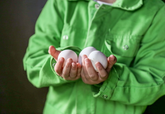 - Kinderen dragen een overal en laarzen bij de dieren, medewerkers dragen speciale kleding en laarzen.