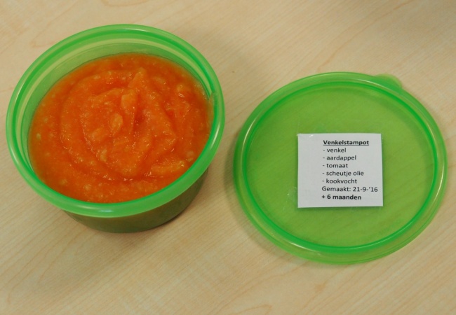 Voor kinderen tot 1 jaar bereiden wij verse, warme groentehappen. We variëren wekelijks in samenstelling, zodat de kinderen wennen aan verschillende smaken en texturen. De groentehappen worden ingevroren en voorzien van een datumsticker.
